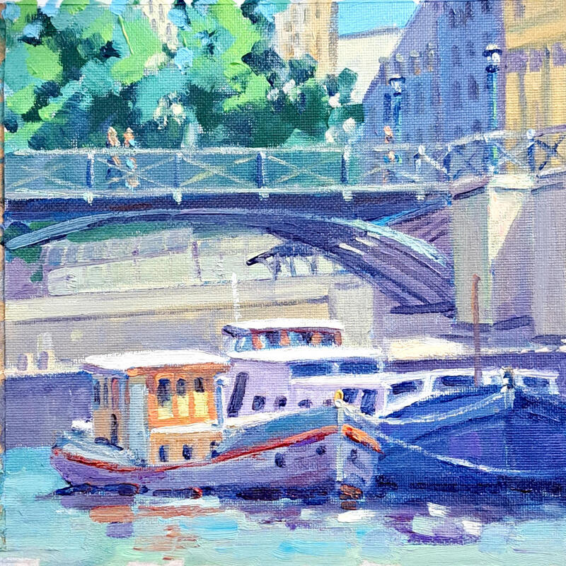 Dans la série "Paris péniches", une escale sous le Pont Neuf pour deux péniches amarrées.