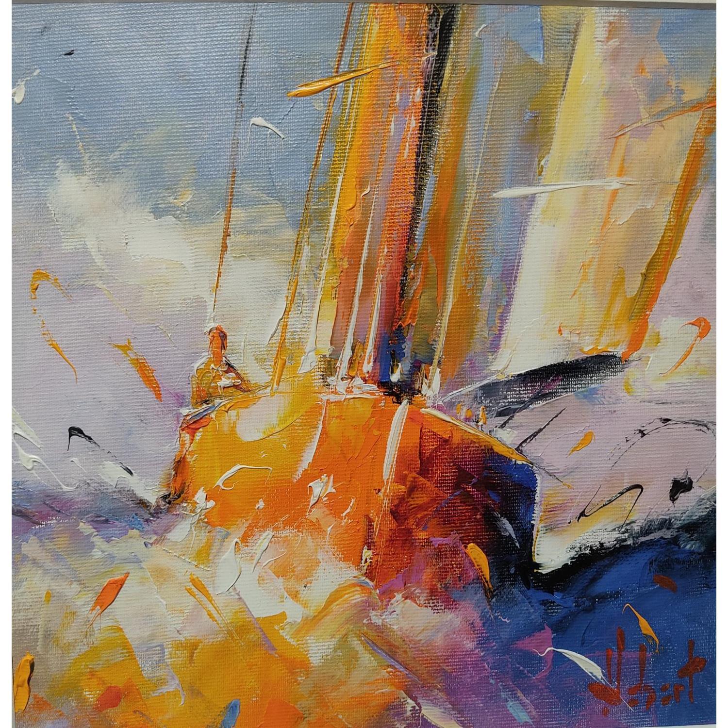 L'artiste a utilisé la technique Huile pour créer cette peinture petit format sur Toile de style Figuratif sur les thèmes Marine, Paysages.