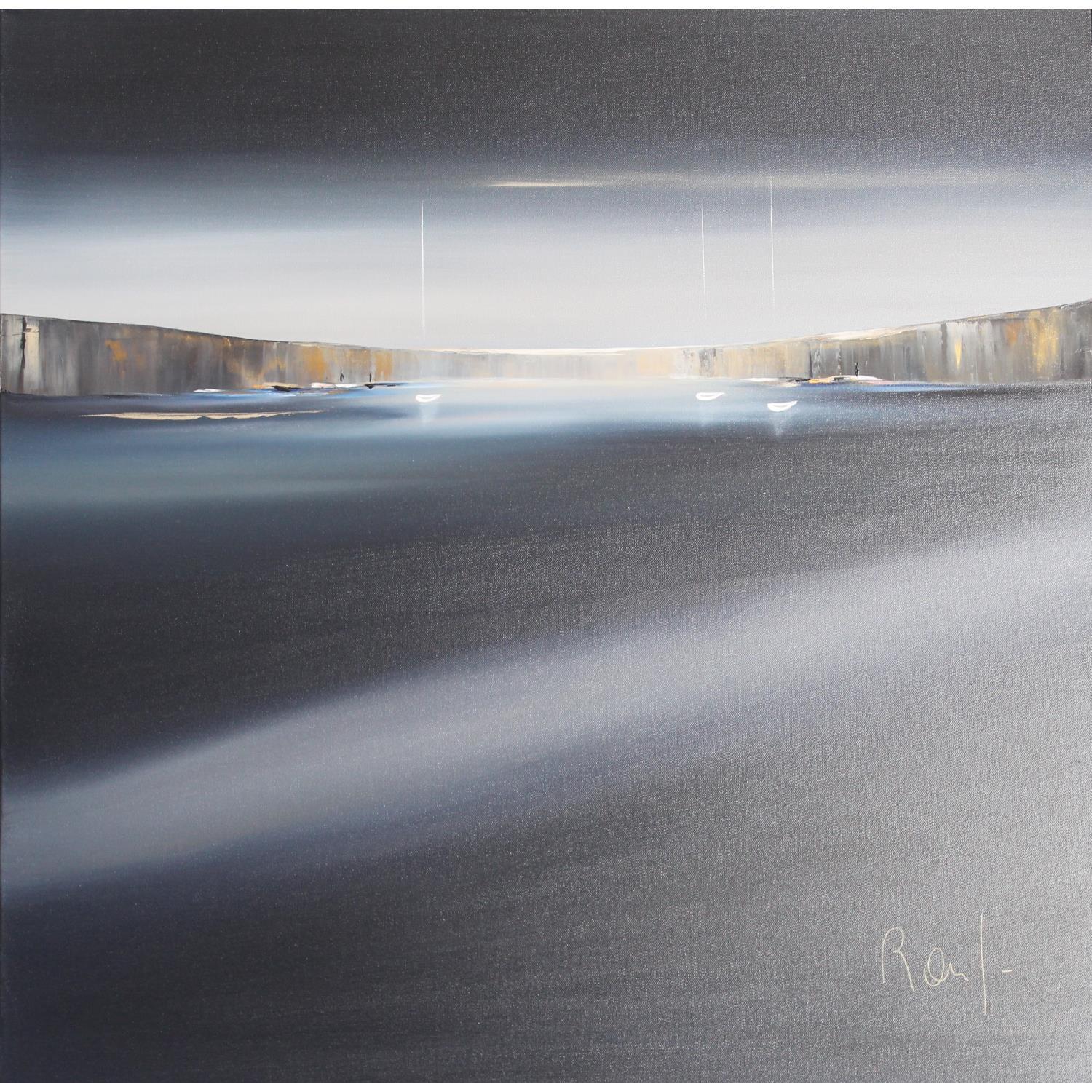 L'artiste a utilisé la technique Huile pour créer cette peinture grand format sur Toile de style Figuratif sur les thèmes Marine, Minimaliste.