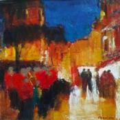L'artiste a utilisé la technique Huile pour créer cette peinture petit format sur Toile de style Figuratif sur les thèmes Musique, Architecture.