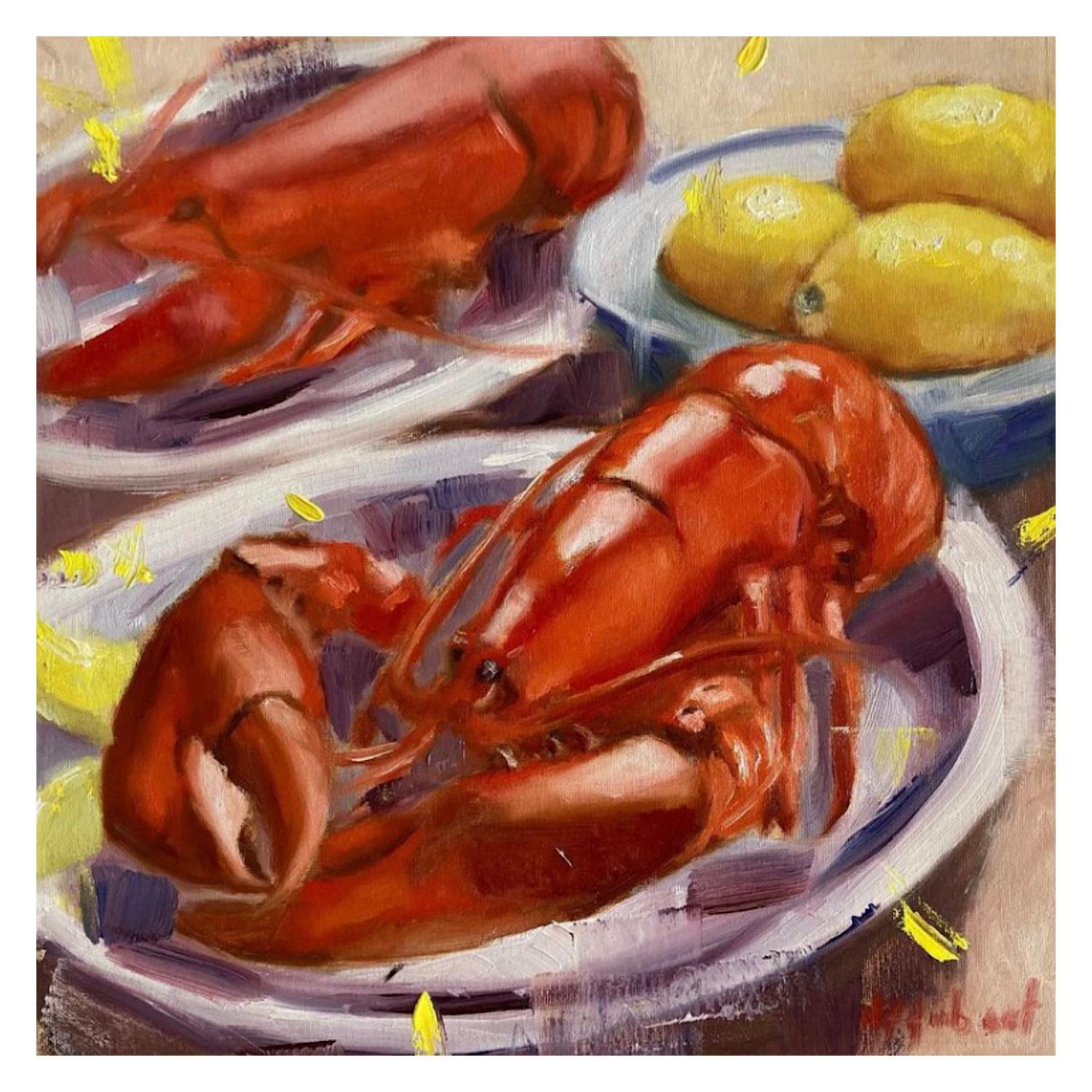 Homards et citrons Peinture Homards et citrons  par Aubert Nawel | Tableau Figuratif Natures mortes Huile