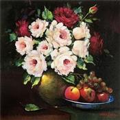 L'artiste a utilisé la technique Huile pour créer cette peinture petit format sur toile de style Figuratif sur le thème natures mortes.