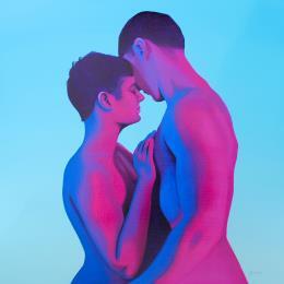Deux amoureux serrés l'un contre l'autre dans une tendre étreinte. Les âmes se rencontrent et fusionnent.