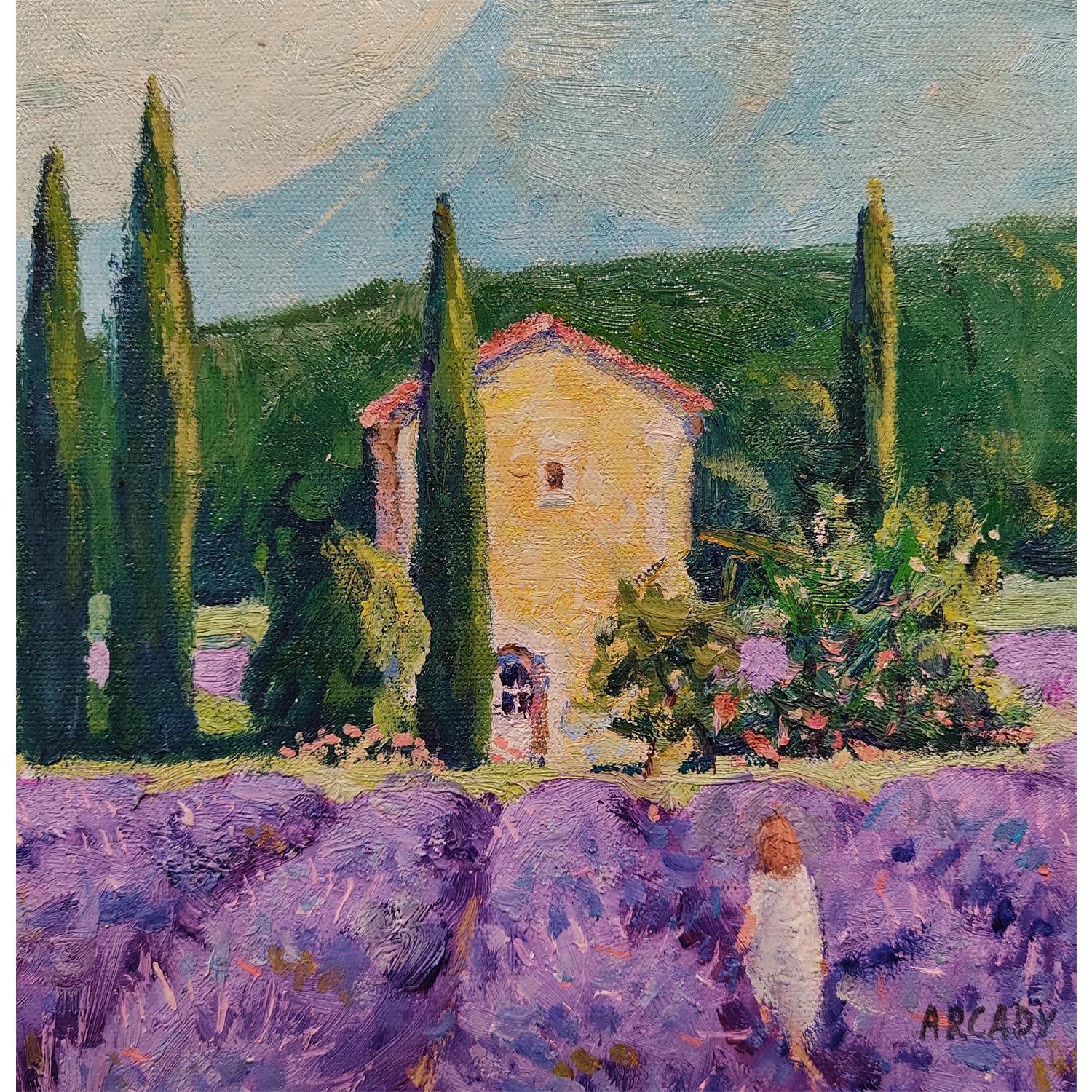 La bastide dans le champ de lavandePeinture La bastide dans le champ de lavande par Arkady | Tableau Figuratif Paysages Huile