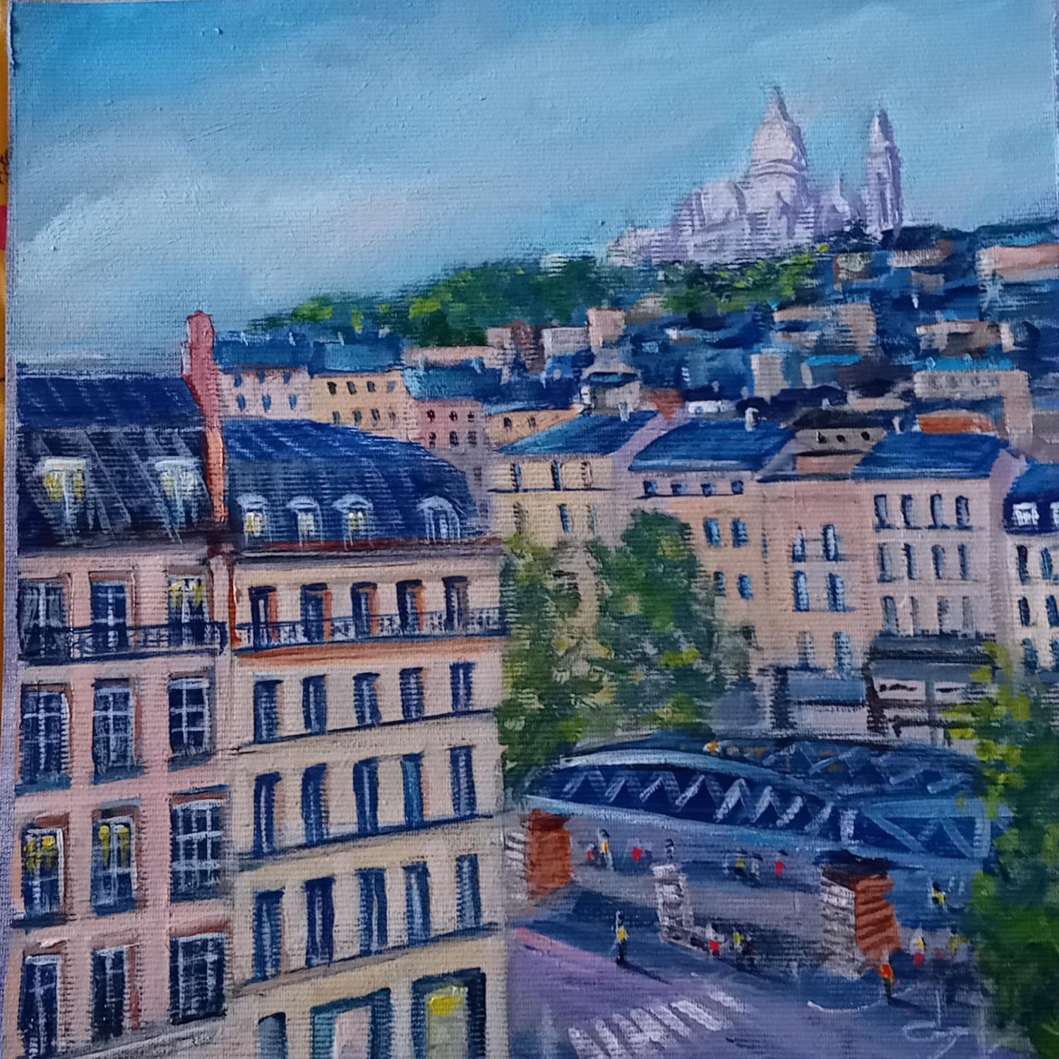 On a une belle vue sur le Sacré Coeur à ParisPeinture On a une belle vue sur le Sacré Coeur à Paris par Degabriel Véronique | Tableau Figuratif Paysages Urbain Scènes de vie Huile