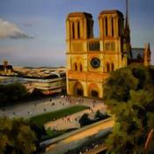 Peinture Fin de journée par Eugène Romain | Tableau Figuratif Paysages Urbain Huile