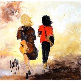 L'artiste a utilisé la technique Huile pour créer cette peinture petit format sur Toile de style Figuratif sur le thème Scènes de vie.