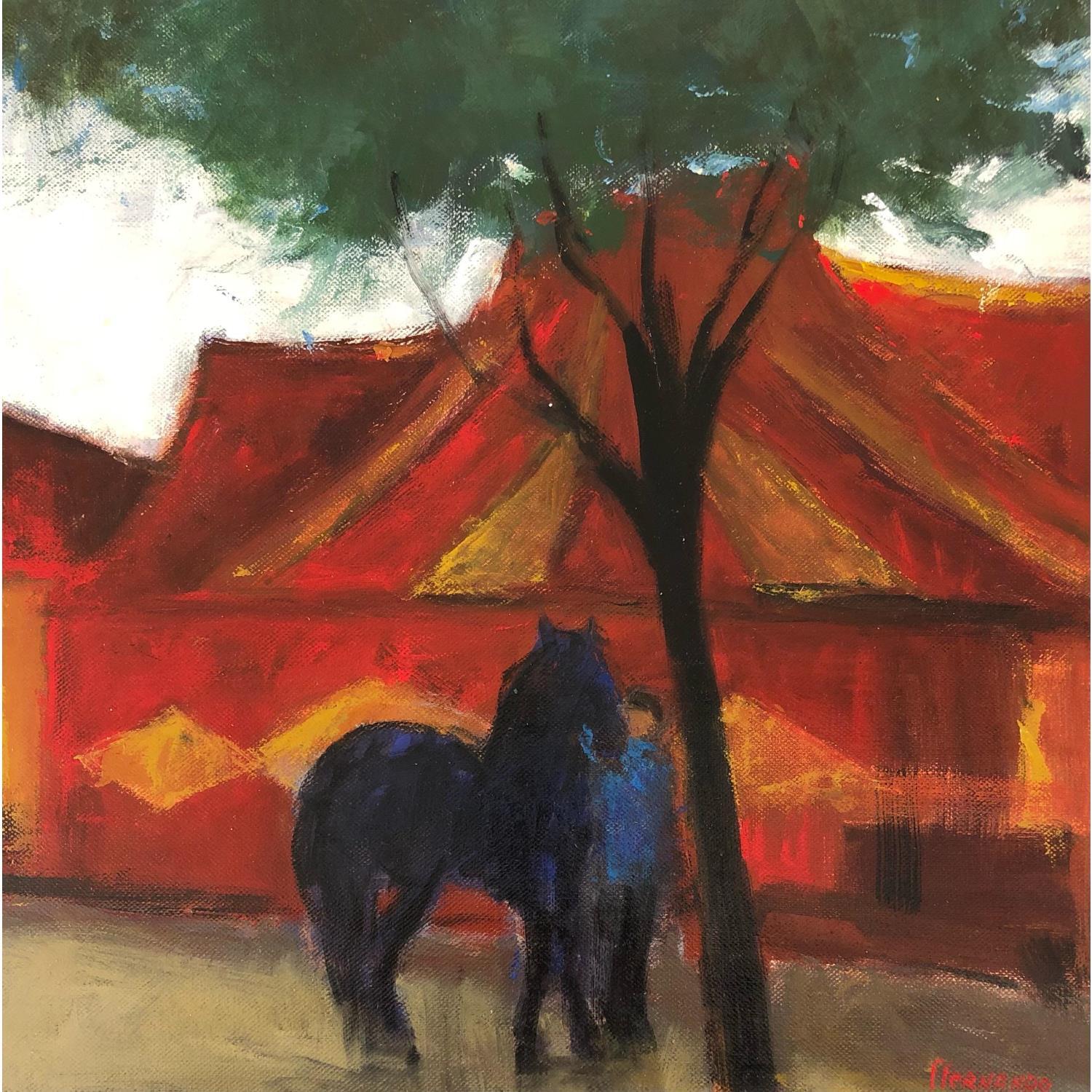 L'artiste a utilisé la technique huile pour créer cette peinture petit format sur toile de style Figuratif sur le thème scènes de vie.