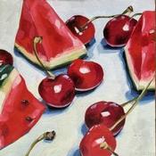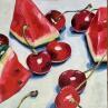 "Cette œuvre capture l'esprit insouciant d'un après-midi d'été, où les fruits semblent danser sur la table. J'ai voulu figer l'énergie ludique de la chaleur, de l'ombre et de la douceur qui se mélangent."