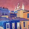 Une palette affirmée, des aplats vigoureux, une peinture impressionniste pour décrire le ciel de Paris aux couleurs du soir, illuminé par les lumières du Sacré-Coeur