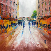 Cette oeuvre d'art contemporain unique et originale "Rue animée" a été réalisée par l'artiste contemporain Raffin Christian.