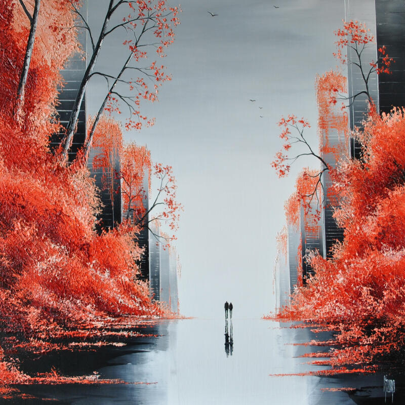 L'artiste a utilisé la technique Huile pour créer cette peinture grand format sur Toile de style Figuratif sur le thème Urbain.