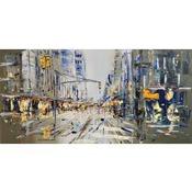 L'artiste a utilisé la technique Huile pour créer cette peinture grand format sur Toile de style Figuratif sur le thème Urbain.