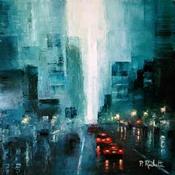 L'artiste a utilisé la technique Huile pour créer cette peinture petit format sur Toile de style Figuratif sur le thème Urbain.