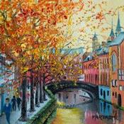 L'artiste a utilisé la technique Huile pour créer cette peinture petit format sur Toile de style Figuratif sur le thème Urbain.