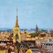L'artiste a utilisé la technique Huile pour créer cette peinture petit format sur Toile de style Figuratif sur le thème Urbain.