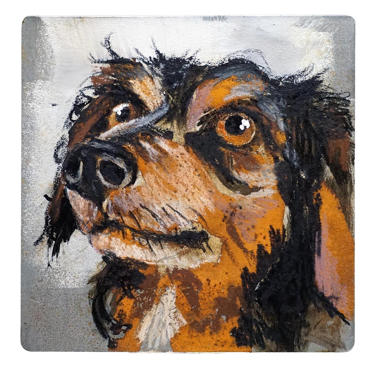 Peinture Un amour de teckel par De Géa Olivier  | Tableau Figuratif Animaux Métal