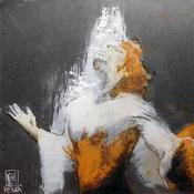 L'artiste a utilisé une technique unique, basée sur l'utilisation de l'oxydation du fer, c'est à dire la rouille, pour créer cette peinture petit format au style singulier.