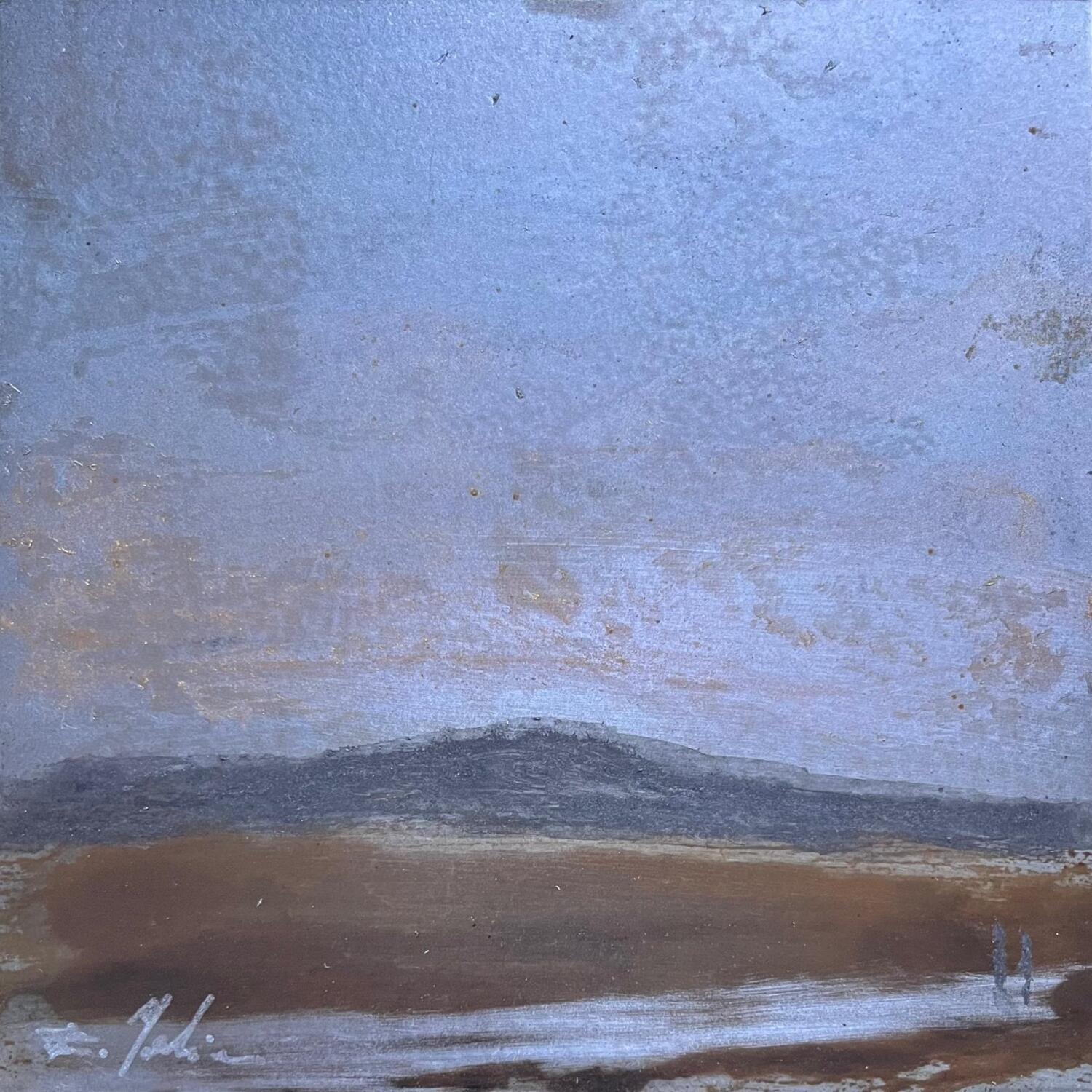 L'artiste a utilisé la technique d’oxydation sur tôle d’acier pour créer cette peinture petit format sur Métal de style Figuratif sur le thème Paysages.