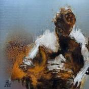 L'artiste a utilisé les techniques Métal, Acrylique, Encre, Fusain pour créer cette peinture petit format sur Métal de style Figuratif sur les thèmes Portraits, Nu.