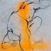 L'artiste a utilisé différentes techniques pour créer cette peinture petit format sur papier de style Figuratif sur le thème nu.