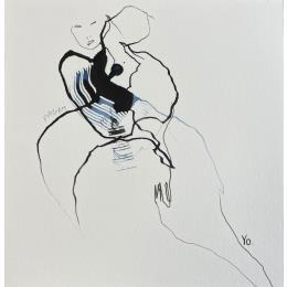 L'artiste a utilisé différentes techniques pour créer cette peinture petit format sur Papier de style Figuratif sur les thèmes Nu, Noir & blanc, Minimaliste.