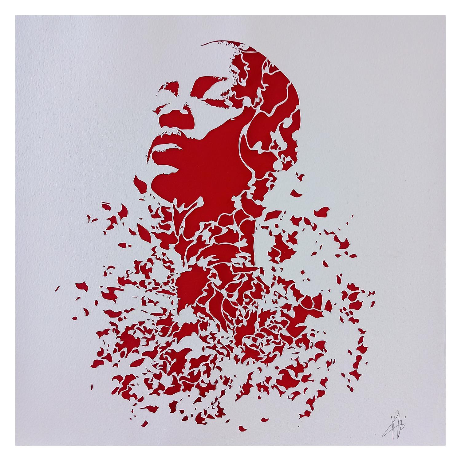 L'artiste a utilisé la technique du papier découpé pour créer cette oeuvre petit format sur Papier de style Figuratif sur le thème Portraits.