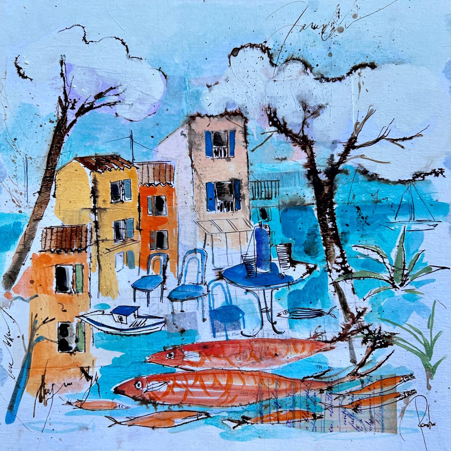 Cette oeuvre d'art contemporain unique et originale "les sardines à la plage" a été réalisée par l'artiste contemporain Colombo Cécile.