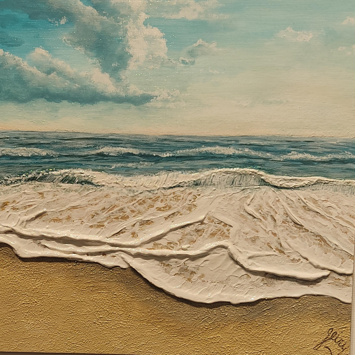 Cette oeuvre d'art contemporain unique et originale "Là où la mer s'apaise" a été réalisée par l'artiste contemporain Geiry.