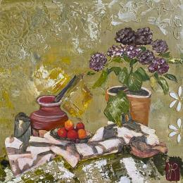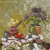 L'artiste a utilisé les techniques Posca, Pastel, Papier, Acrylique, Collage pour créer cette peinture petit format sur Carton toilé de style Figuratif sur le thème Natures mortes.