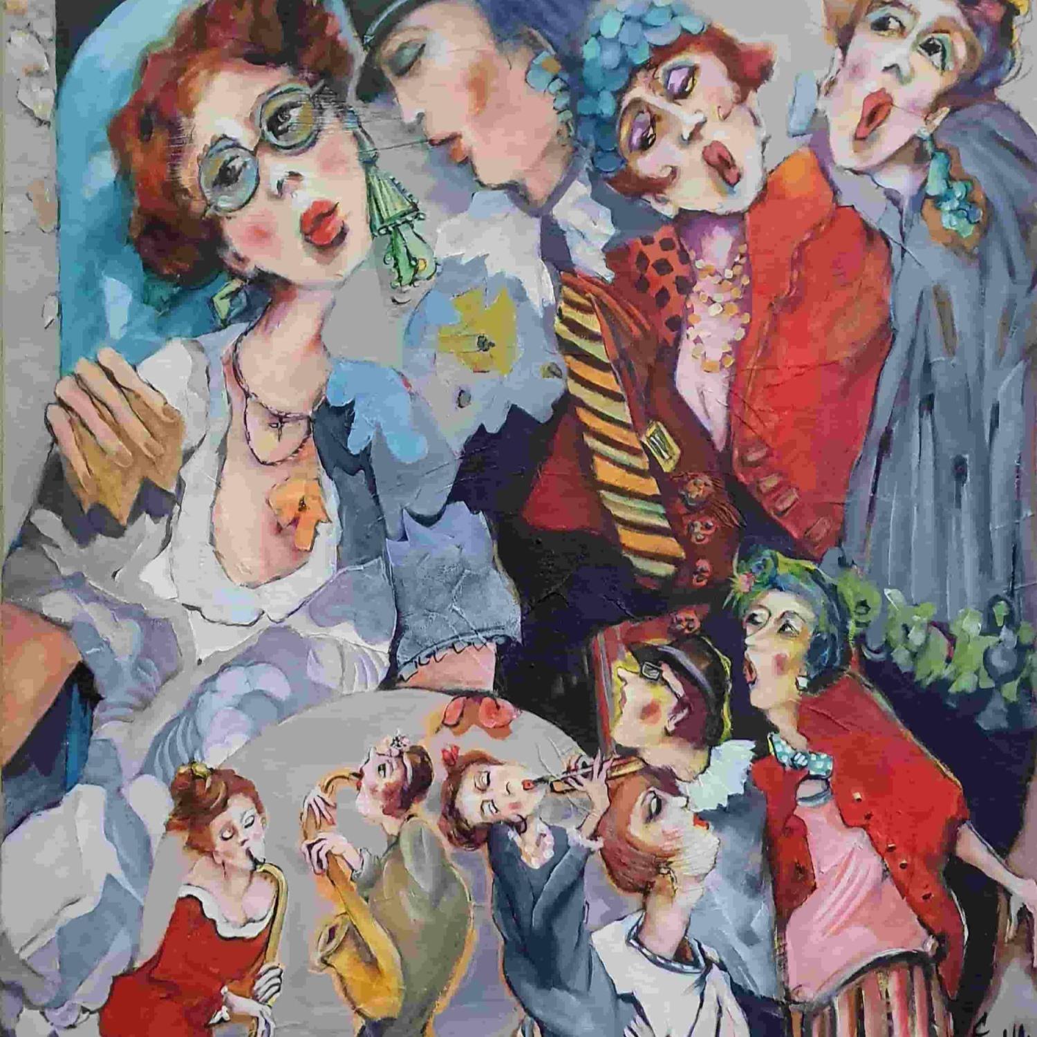 Peinture Le petit monde enjoué du jazz par Garilli Nicole | Tableau Figuratif Scènes de vie