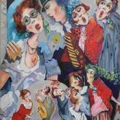 L'artiste a utilisé différentes techniques pour créer cette peinture grand format sur Toile de style Figuratif sur le thème Scènes de vie.