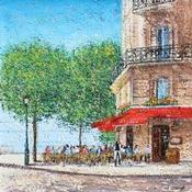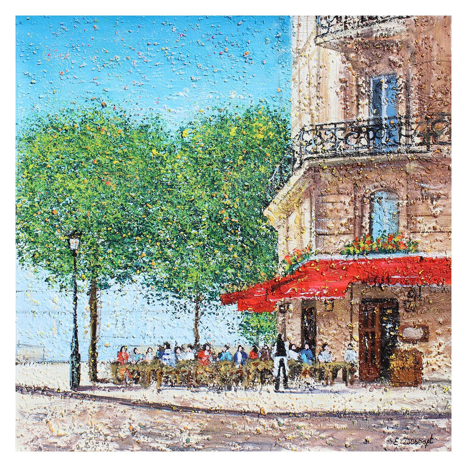 Cette oeuvre d'art contemporain unique et originale "Un café au coeur de l'île Saint Louis" a été réalisée par l'artiste contemporain Dessapt Elika.