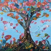 Cette oeuvre d'art contemporain unique et originale "Petit arbre de vie et pétales " a été réalisée par l'artiste contemporain Amblard Florence.
