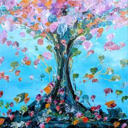 Cette oeuvre d'art contemporain unique et originale "Petit arbre de vie fleuri " a été réalisée par l'artiste contemporain Amblard Florence.