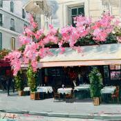 Under the Pink BlossomsPeinture Under the Pink Blossoms par Xanlar | Tableau Impressionnisme Urbain Architecture Huile