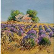Cette oeuvre d'art contemporain unique et originale "Le vieux cabanon dans les lavandes" a été réalisée par l'artiste contemporain Sannier Daniel.
