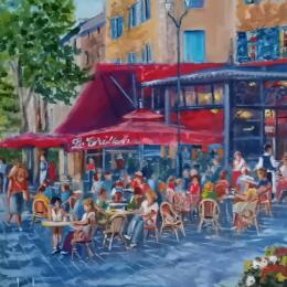 Brasserie Le Grillon à Aix en Provence Peinture Brasserie Le Grillon à Aix en Provence  par Degabriel Véronique | Tableau Impressionnisme Paysages Urbain Scènes de vie Huile
