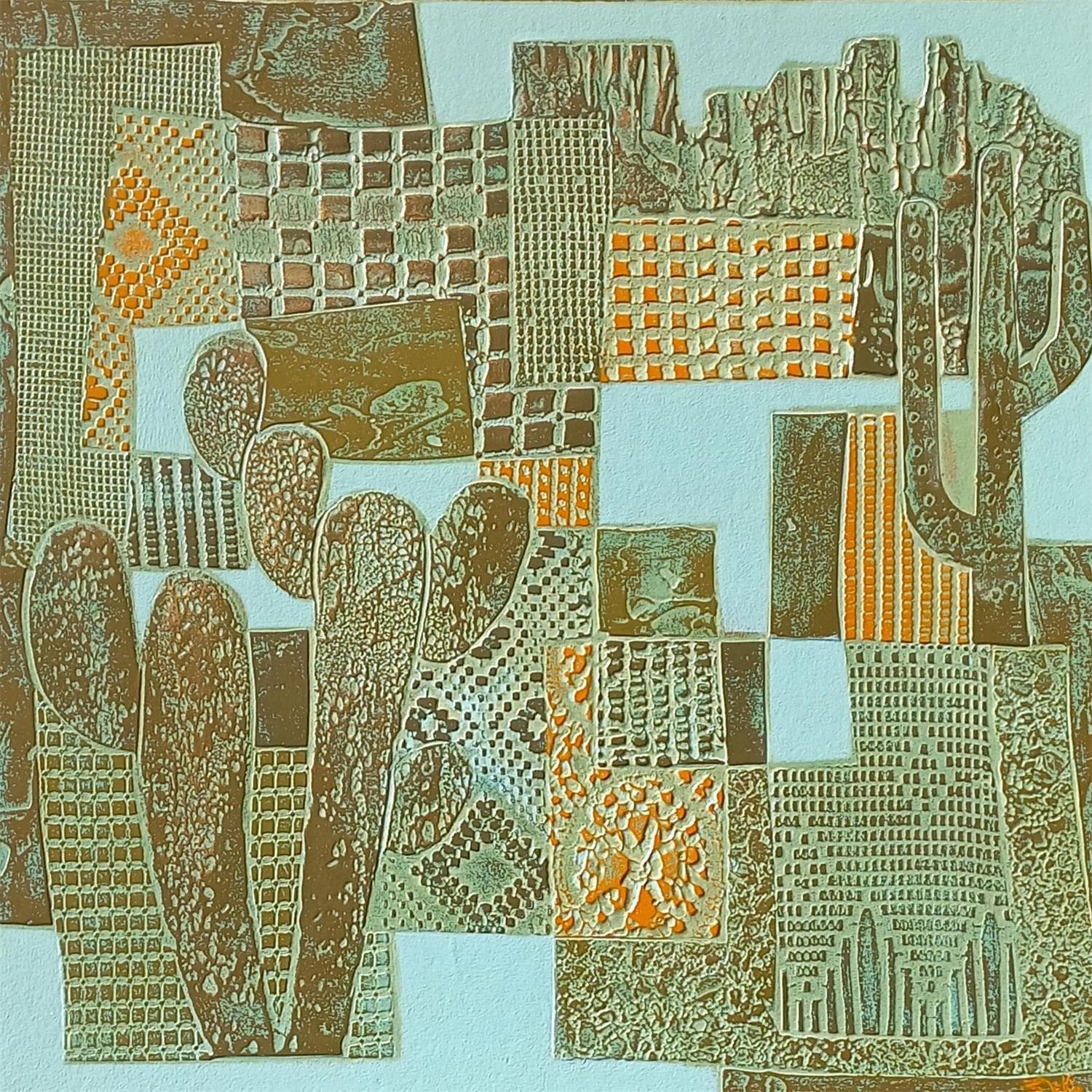 Cette oeuvre d'art contemporain unique et originale "5a Desert Bronze et Jaune" a été réalisée par l'artiste contemporain Devie Bernard .
