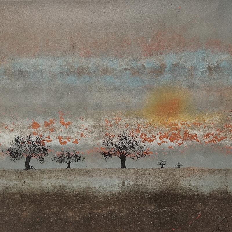 L'artiste a utilisé les techniques Métal, Upcycling pour créer cette peinture petit format sur Métal de style Matiérisme sur le thème Paysages.