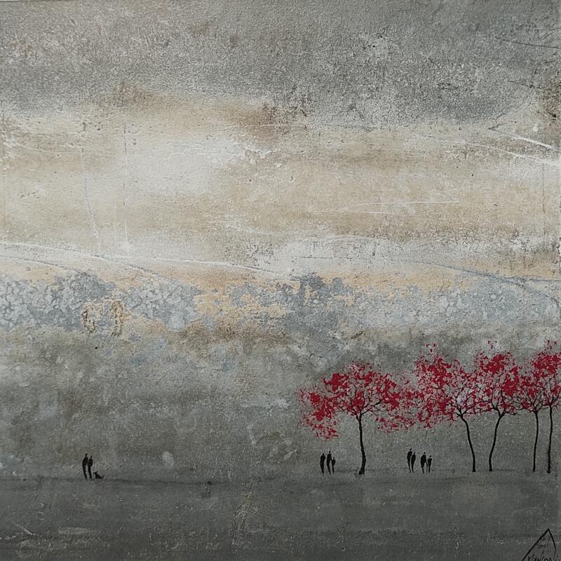 L'artiste a utilisé les techniques Métal, Upcycling pour créer cette peinture petit format sur Métal de style Matiérisme sur le thème Paysages.
