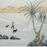 L'artiste a utilisé la technique Sable pour créer cette peinture petit format sur Papier de style Matiérisme sur les thèmes Marine, Scènes de vie, Animaux.