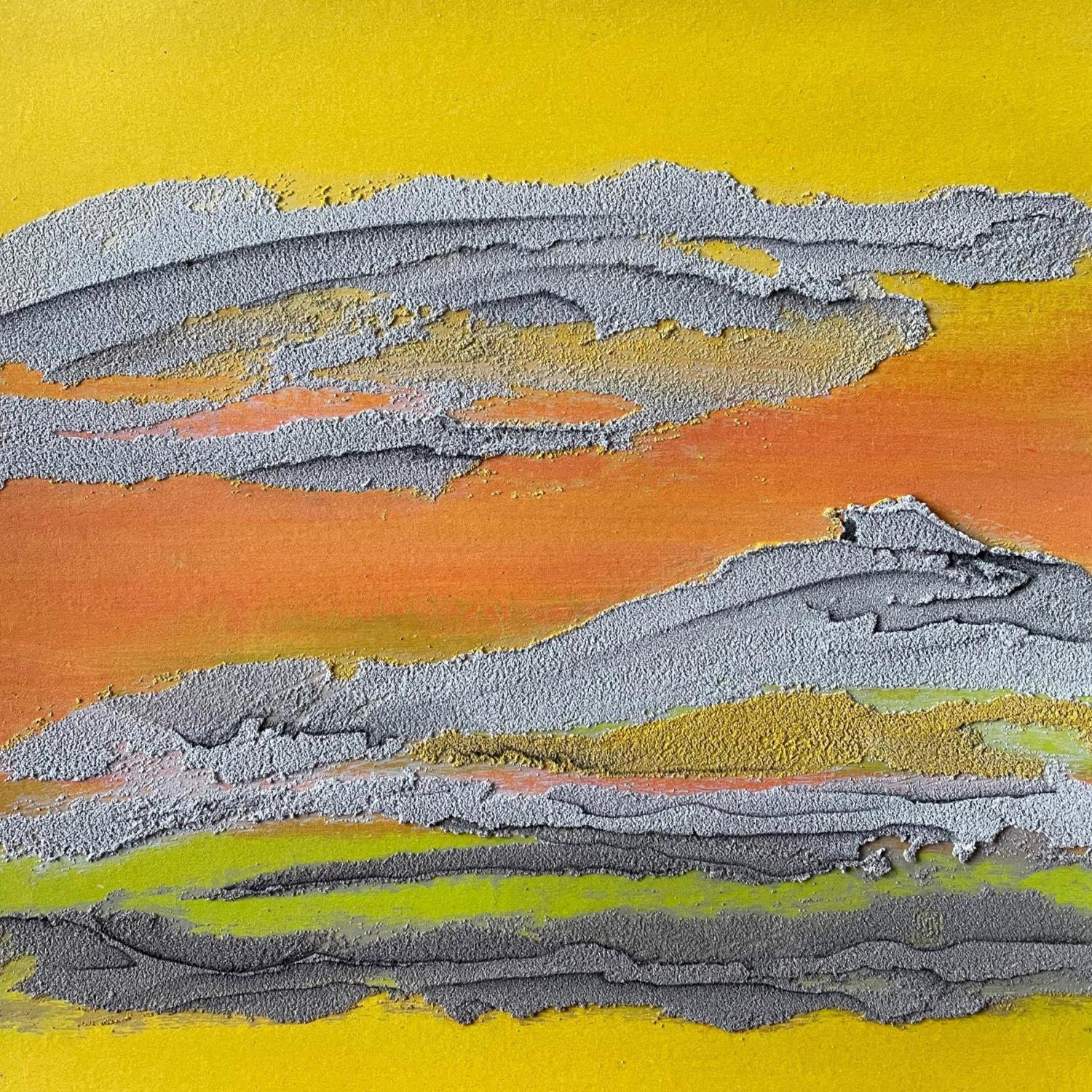 L'artiste a utilisé la technique Sable pour créer cette peinture petit format sur Toile de style Matiérisme sur le thème Minimaliste.