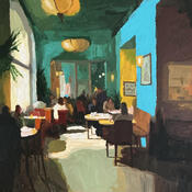 Le Café in turquoise and greenPeinture Le Café in turquoise and green par Murgatroyd Daniel | Tableau