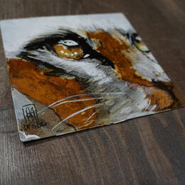 L'artiste a utilisé différentes techniques pour créer cette peinture petit format au style singulier.