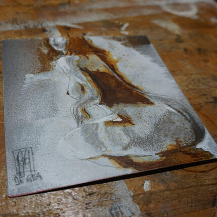 Autodidacte passionné, Olivier de Géa développe une démarche artistique singulière mêlant dessin et oxydation. Fasciné par le corps humain et animal, il explore l’abstraction dans le figuratif à travers une technique unique utilisant la rouille comme médium principal. Son travail allie maîtrise technique, sensualité et prise de risque, pour donner naissance à des œuvres aussi organiques qu’émouvantes.