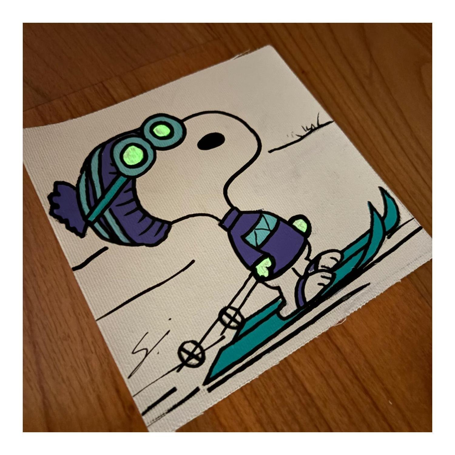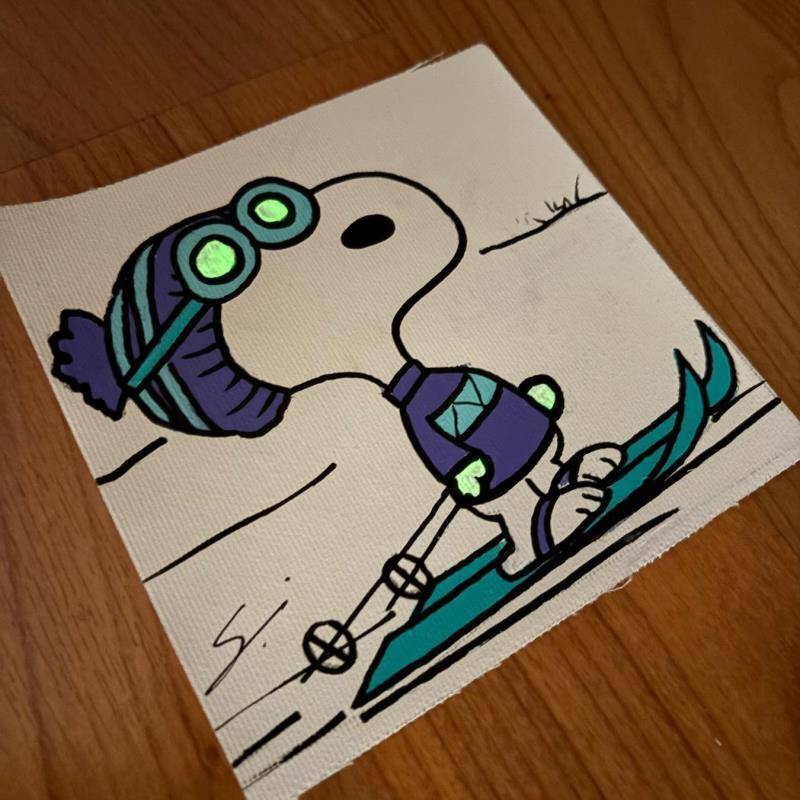 Peinture SNOOPY  IN FLUOR SKI par Mestres Sergi | Tableau Pop-art Icones Pop Enfant Minimaliste Graffiti Acrylique