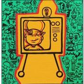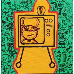 L'artiste a utilisé différentes techniques pour créer cette peinture petit format sur toile de style Pop art sur le thème icones Pop.