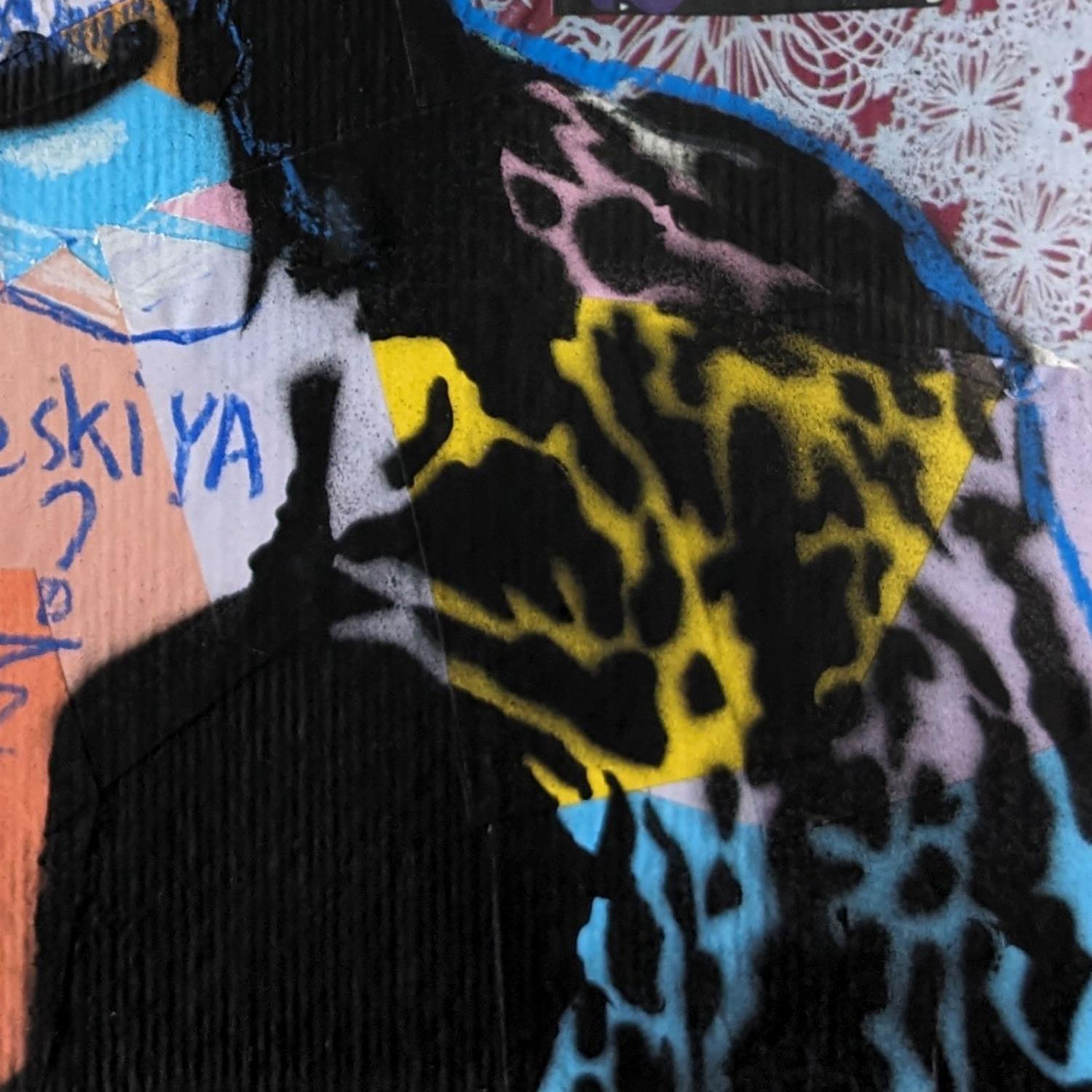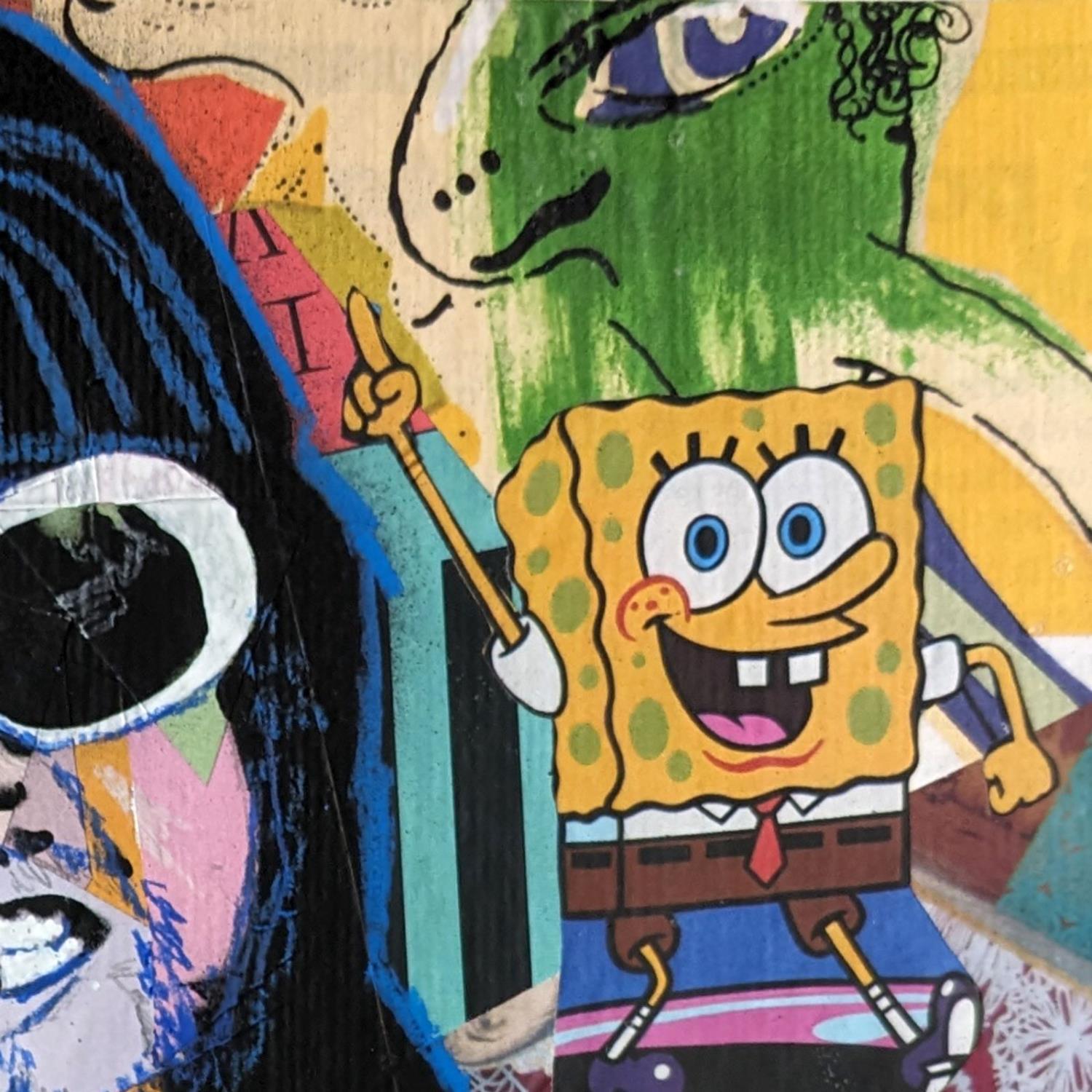 L'artiste a utilisé du collage, des crayons et de l'encre acrylique pour créer cette peinture petit format sur Papier de style Pop-art sur le thème Icones Pop.