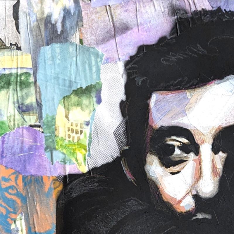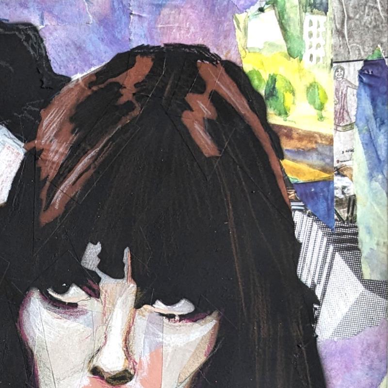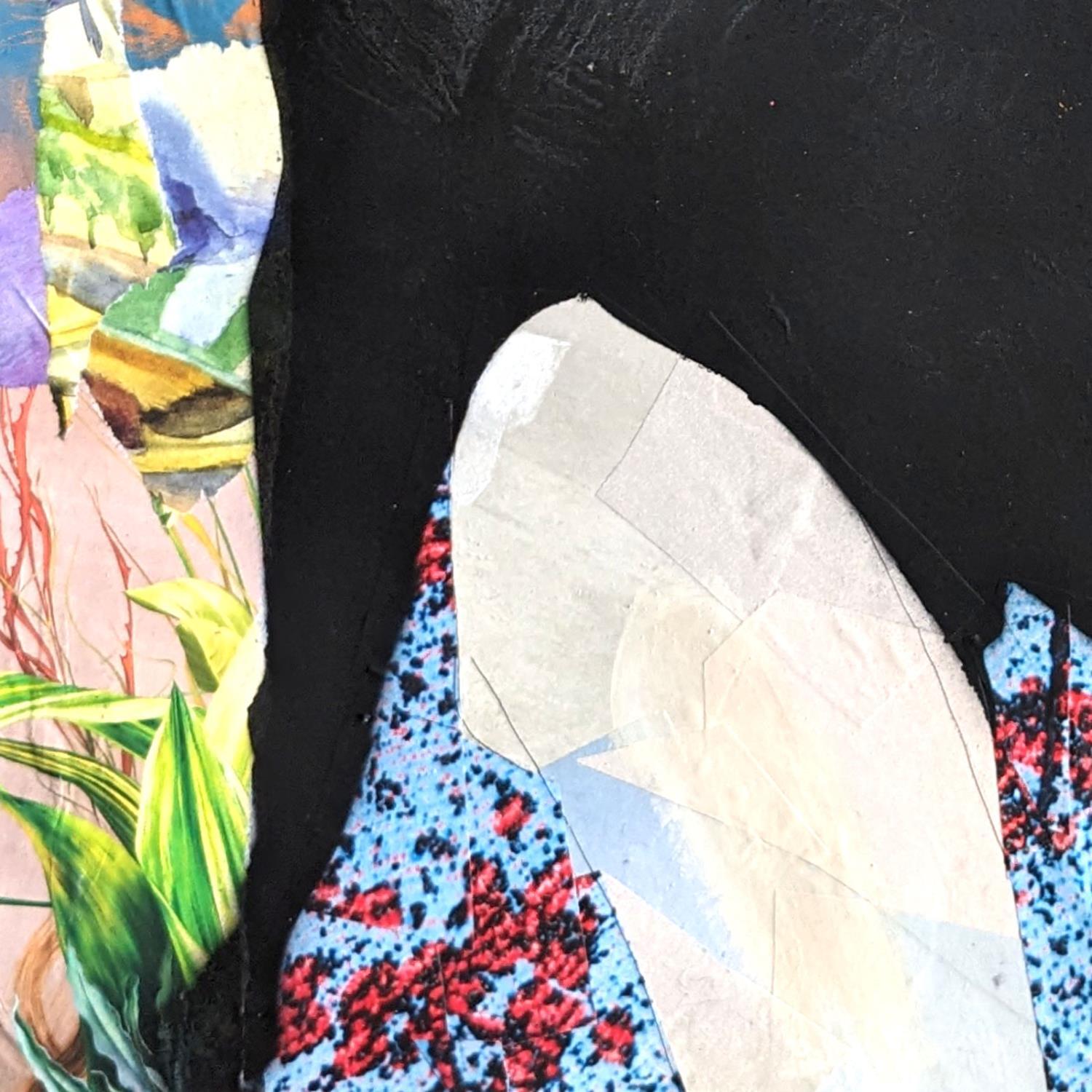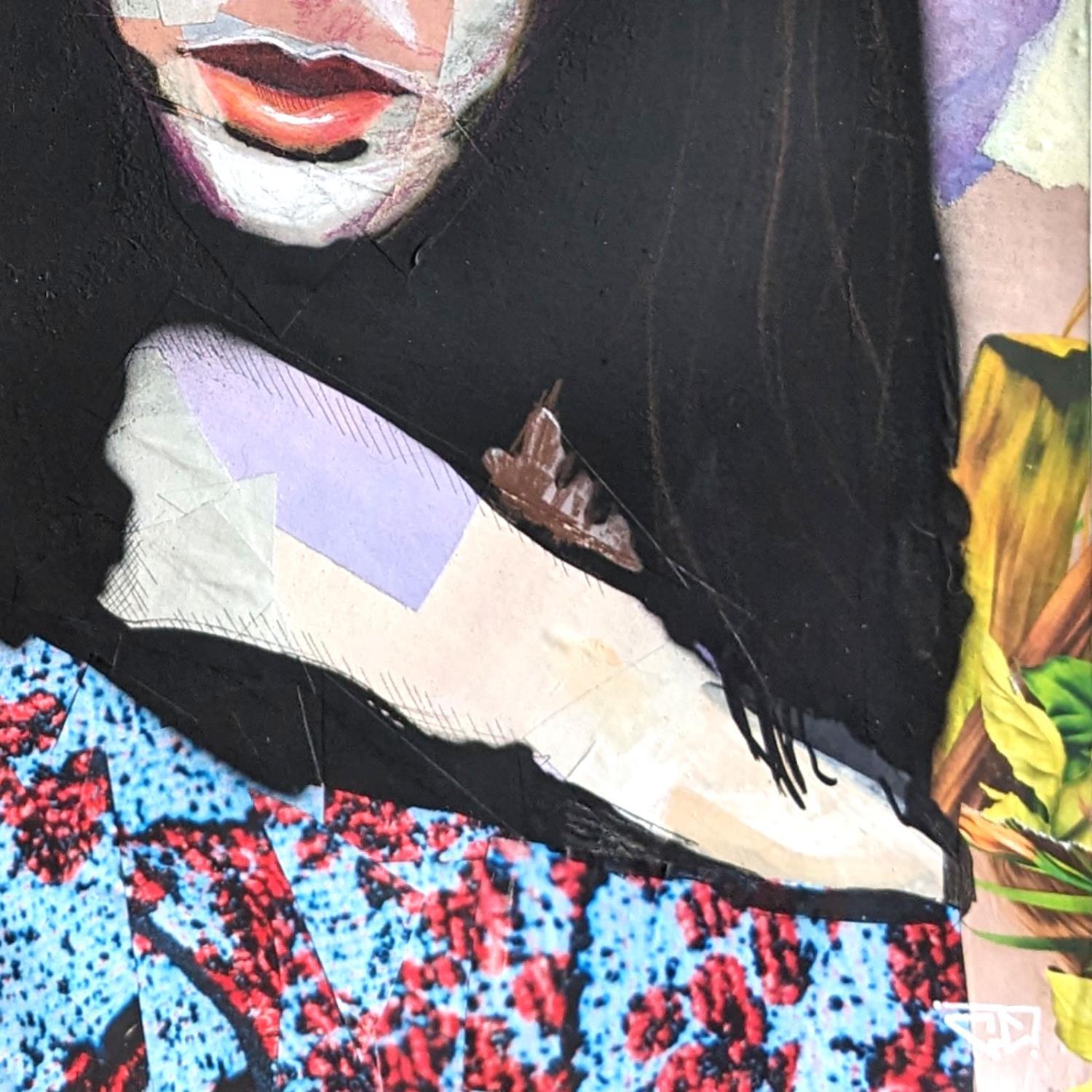 L'artiste a utilisé du collage, de l'encre, de la peinture acrylique et des crayons pour créer cette peinture petit format sur Papier de style Pop-art sur le thème Icones Pop.